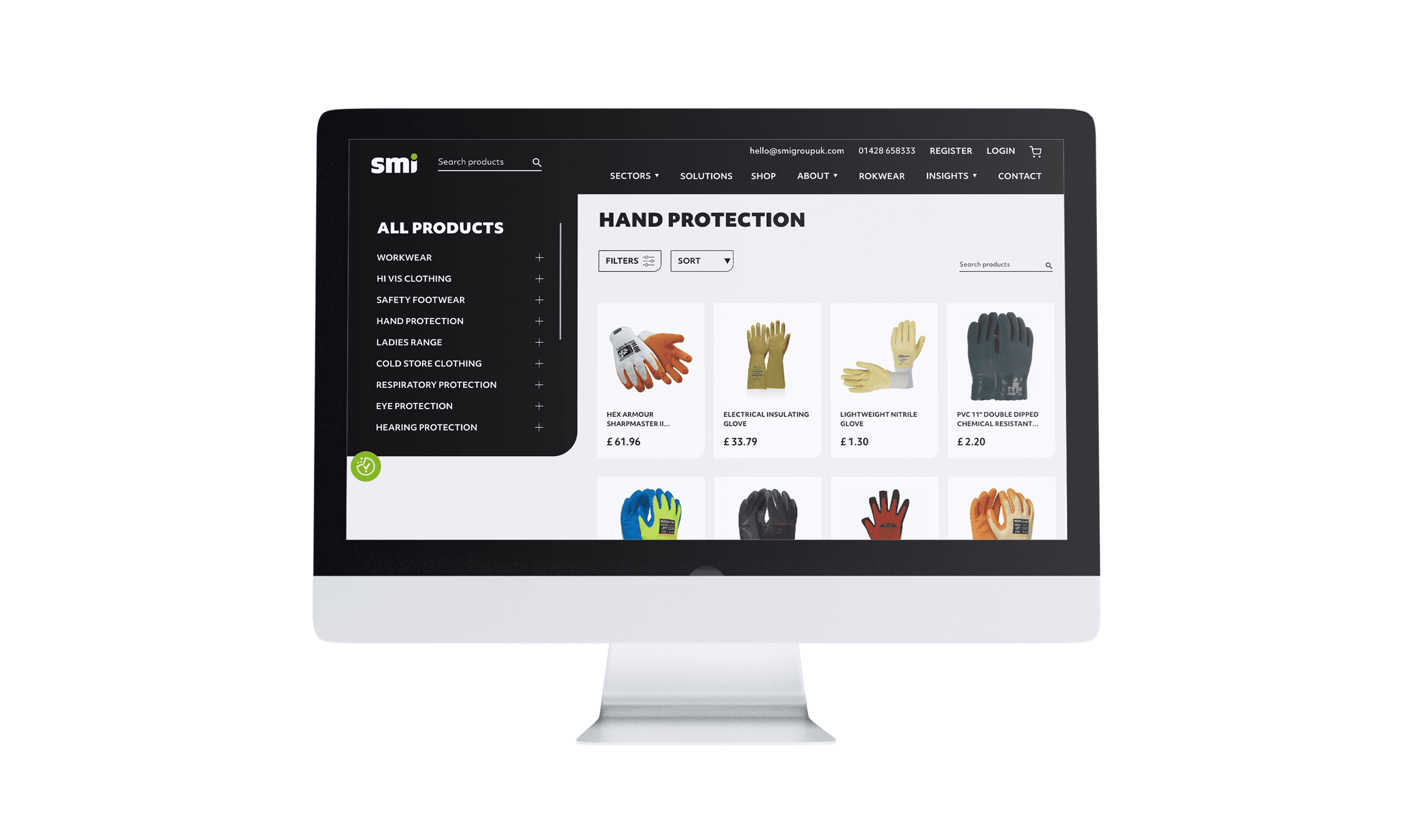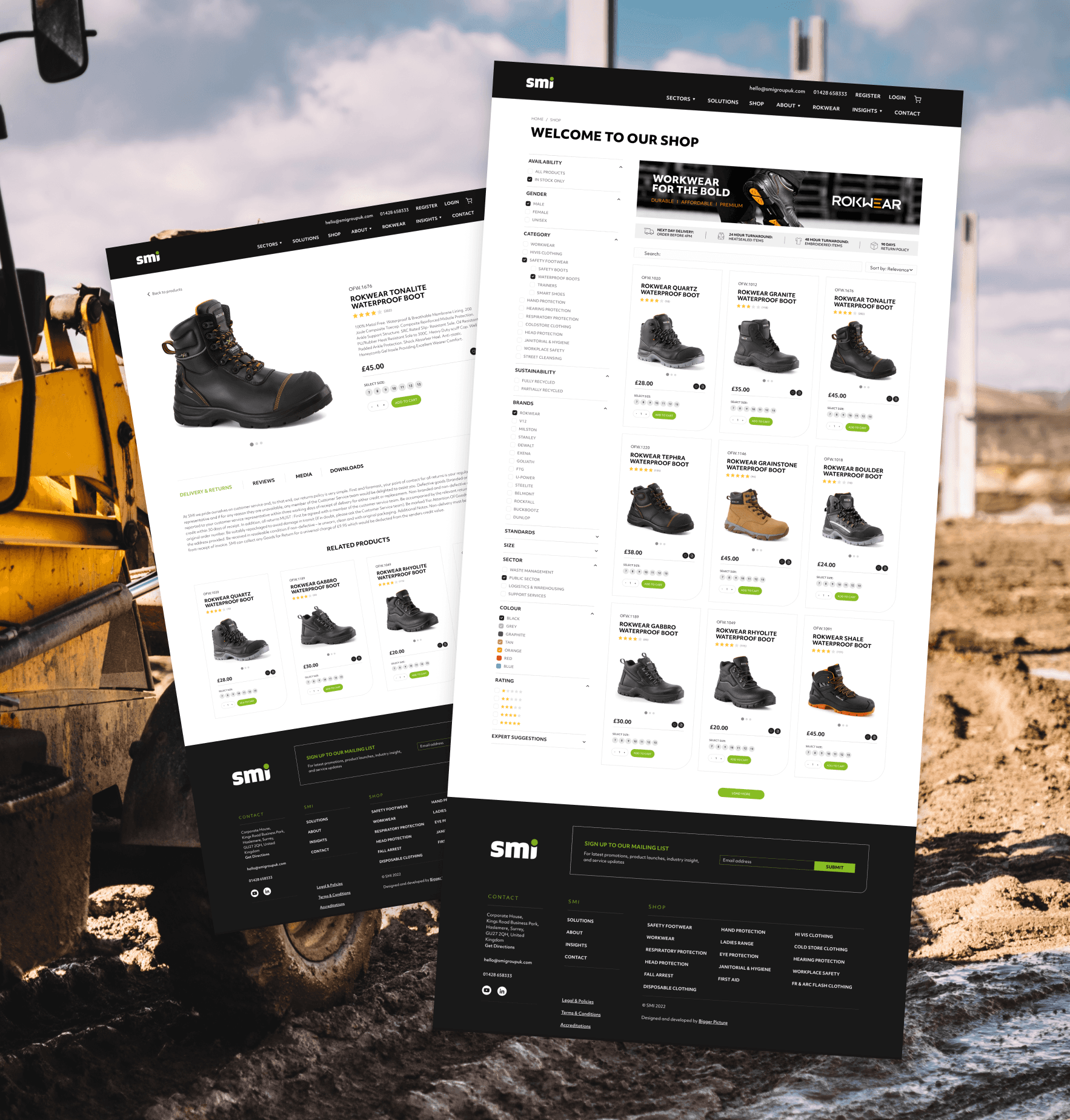 Filtering was expanded to reflect how customers shop. New filters enabled refinement by sector, colour, brand, sustainability rating and safety standards, helping users quickly identify suitable products for specific environments and compliance requirements. Brand filtering and improved listing visibility made Rokwear products easier to discover, supported by a promotional banner that further increased awareness.